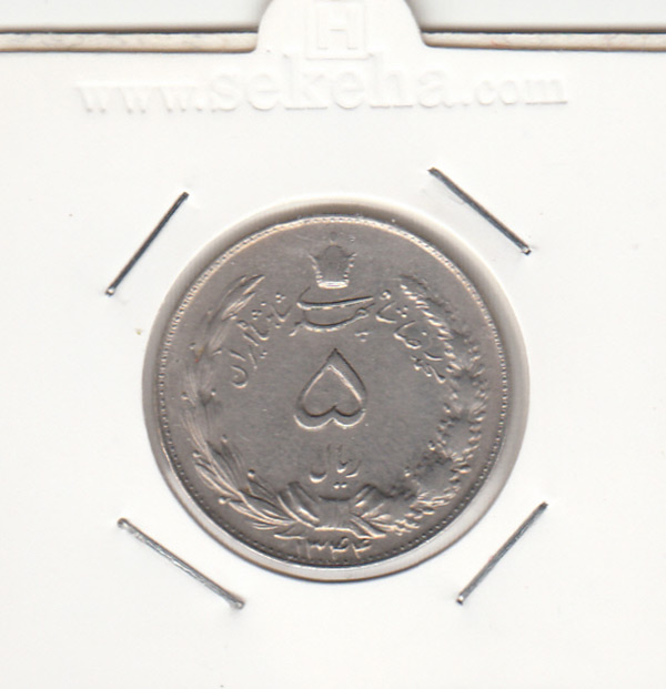 سکه 5 ریال دو تاج 1344 - محمد رضا شاه